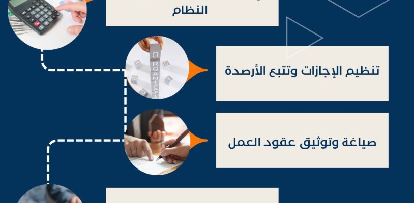 خدمة متكاملة لإدارة وتنظيم جميع عمليات شؤون الموظفين داخل المنشأة، تشمل التعيين، العقود، الإجازات، الرواتب، وإنهاء الخدمة، وفق الأنظمة السعودية.
